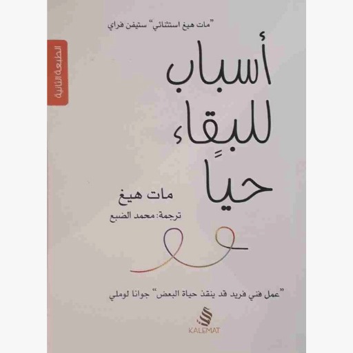 أسباب للبقاء حيا بقلم مات هيغ … أِشياء استمتعت بها بعد أن اعتقدت انني لن استمتع بأي شيء على الإطلاق شروق الشمس، غروبها، آلاف الشموس والعوالم التي تشرق في سماء الليل. الكتب. البيرة الباردة. الهواء النقي. الأحصنة. الكتب القديمة المصفرة. القبلات الطويلة، العميقة، ذات المعنى. القبلات القصيرة، السريعة، المؤدبة. أحواض السباحة الباردة. المحيطات. البحار. الأنهار. وجبات الحانات. الأضواء وهي تخفت في صالات السينما..